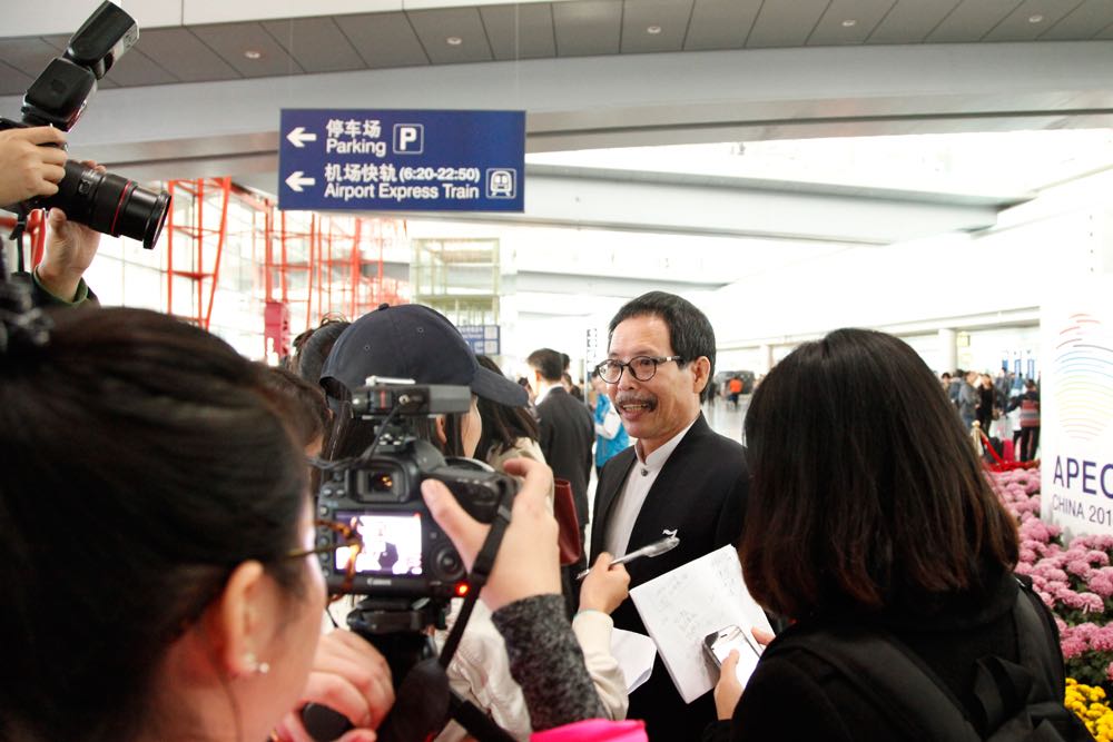 洪肇设董事长身穿中华立领正装受到媒体追捧
