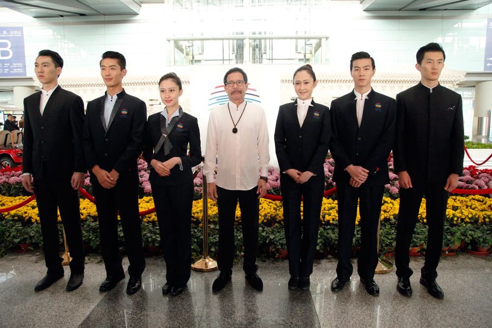 其中,中华立领衬衫领口和中华立领正装袖口的中国红纽扣展现了对中国人民对APEC会议的热情与参与。中华立领正装领口、口袋处祥云纹饰的运用则寓意着中国人民对祥和生活的向往及对APEC会议成功举办的期许。融合中国汉服特色的领型设计,简洁、大方,符合东方人的脸型特征。中华立领正装胸前APEC会议徽章为中国风刺绣工艺,体现了中国传统工艺的敬意与发扬,也是柒牌集团长期致力于非物质文化遗产研究、保护与传承的成果展示。所有这些设计的独到之处,是柒牌集团对中国传统文化的主动传承,也是柒牌集团在中华立领上的十年沉淀与厚积薄发。