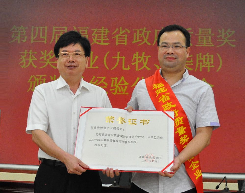 福建省政府质量奖设立于2009年,用于表彰在经济领域中实行卓越绩效管理、经济社会效益显著的企业或组织。福建省政府质量奖结合市场评价、专家评审等方式,每年评审一次,每次授奖不超过5个,每家获奖企业由省政府奖励200万元,同时授予奖杯和证书。截止到本届,全省有16家企业获此殊荣,其中,泉州仅四家,分别是恒安、特步、柒牌、九牧。