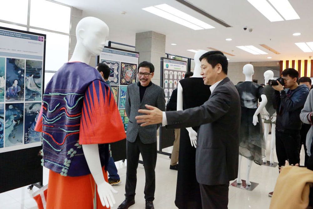 清华深研院设计艺术研究所所长黄维向柒牌集团董事长洪肇设介绍学院情况