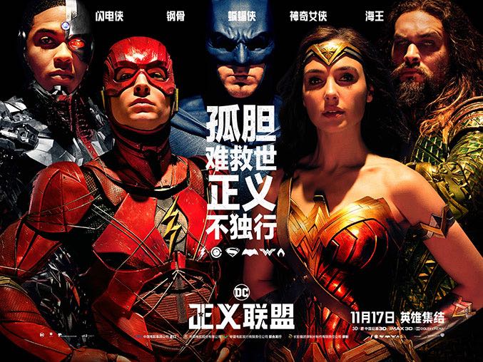 日前,由华纳兄弟电影公司出品的DC超级英雄电影《正义联盟》定档11月17日全球公映并发布了最新预告片。《正义联盟》的故事承接《蝙蝠侠大战超人:正义黎明》,讲述超人为地球牺牲后,世界需要英雄,蝙蝠侠在新伙伴神奇女侠的感召下组建正义联盟,与威胁地球的强大入侵者——宿敌荒原狼及天启星类魔大军展开史诗对决。