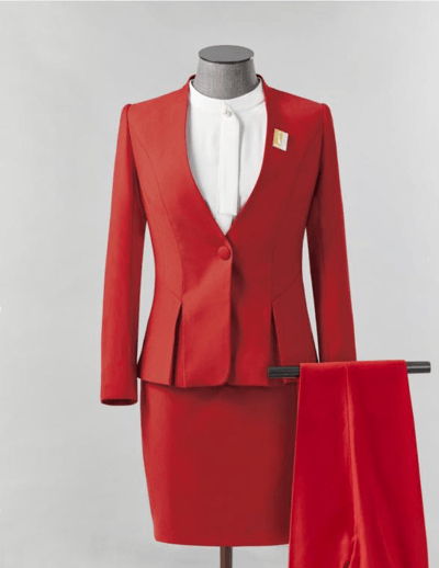 其中,女主持人服装采用优雅立领设计,下摆交叠如花瓣活泼灵动。内搭为简约净色,柔美线条交汇间缀以温润珍珠,延伸出如枝叶般秀美形态,诠释女性刚柔并济的美感。