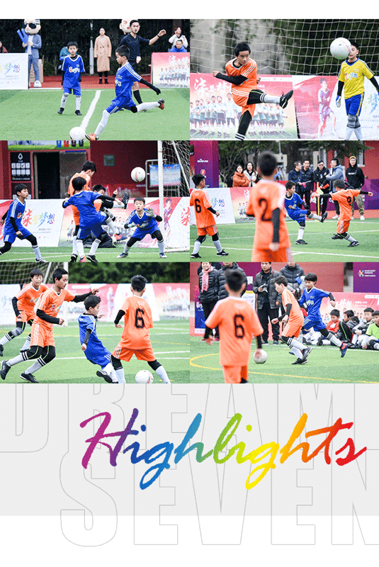 圆梦赛发布会后,通过结业比赛甄选的两支优胜队伍:安徽龙祥小学队与上海华虹小学队,分别由柒牌常务副总裁洪炳文、上海华扬联众公益基金会许琛菲、前中国女子国家足球队队员李文琪带领入场。随着主裁判一声哨响,“柒号梦想”青少年公益足球训练营圆梦赛正式开启。